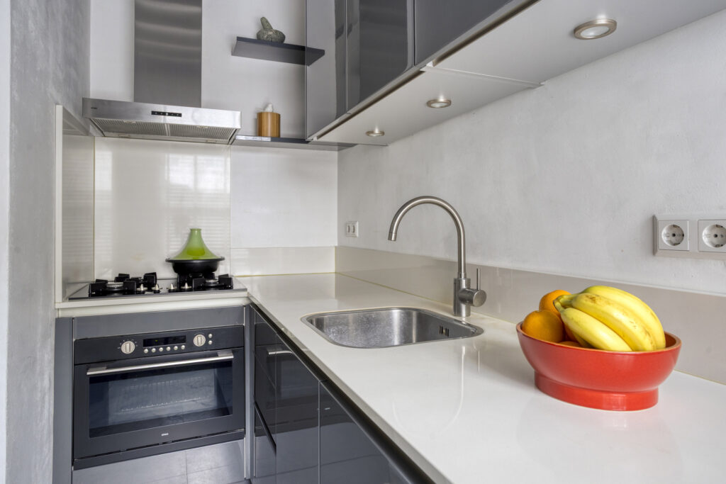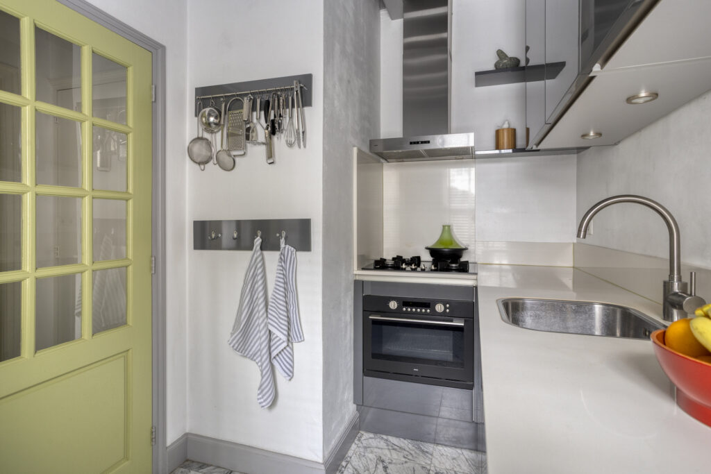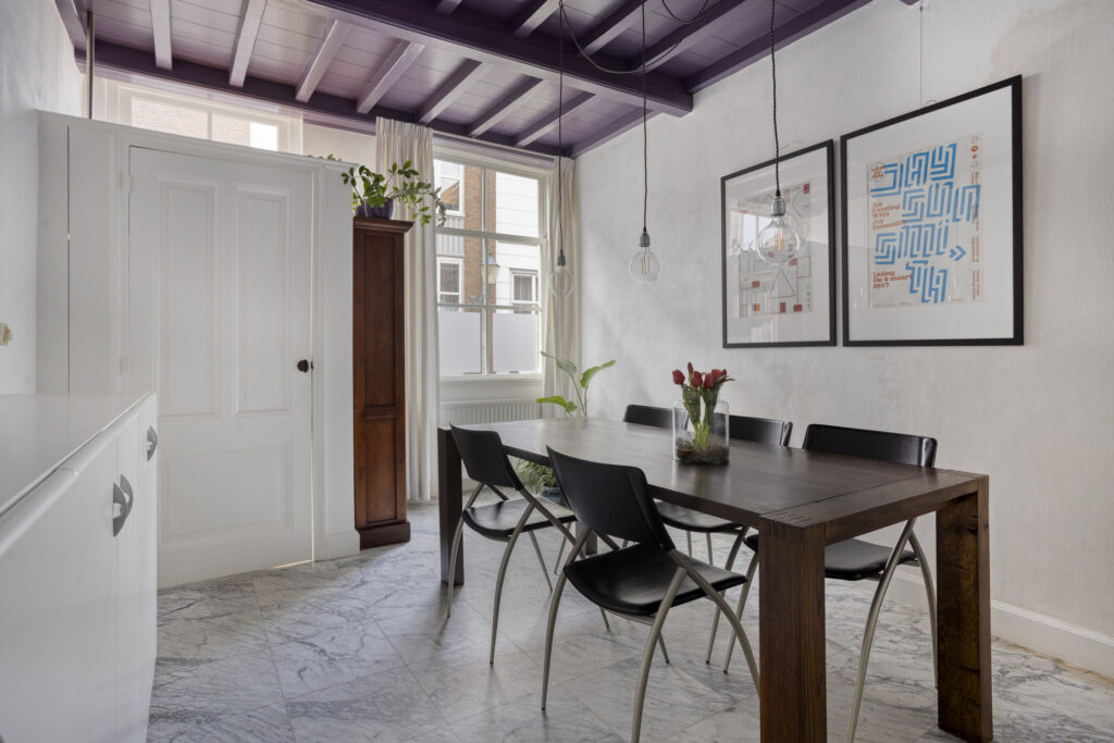 De woonkamer bevindt zich op de eerste verdieping. Zodra je boven komt, voel je het: dit is een kamer met sfeer. Dankzij de vide kijk je helemaal tot in de nok, waardoor de ruimte groter en lichter aanvoelt dan je verwacht van dit kleine huis. Het originele dakbeschot is zichtbaar en geeft de ruimte een ruime uitstraling. De hoge plafonds, de lichtinval en de charmante indeling maken dit een heerlijke plek om te ontspannen. Vanuit hier heb je via een trap toegang tot de zolder, een praktische ruimte perfect voor extra opslag.