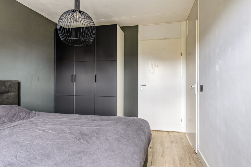 Het appartement beschikt over twee ruime slaapkamers met veel lichtinval. Beide kamers zijn netjes afgewerkt en multifunctioneel in te richten. De badkamer is modern en smaakvol, met een combinatie van donkere vloertegels en grijze wandtegels. Er is een ruime inloopdouche en een stijlvol houten badkamermeubel met veel opbergruimte. Een plek om écht tot rust te komen!